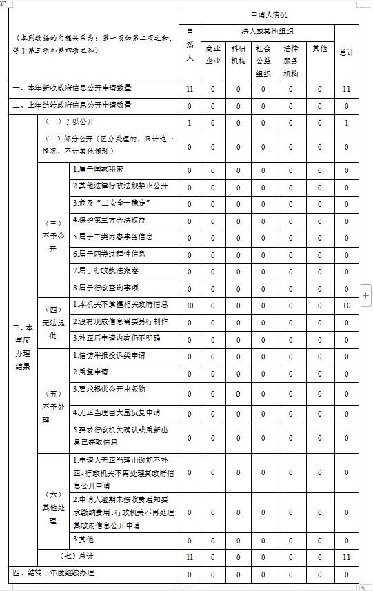 三、收到和处理政府信息公开申请情况